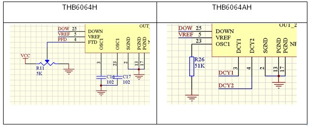 THB6064H与THB6064AH的 3、4、23外接电路区别